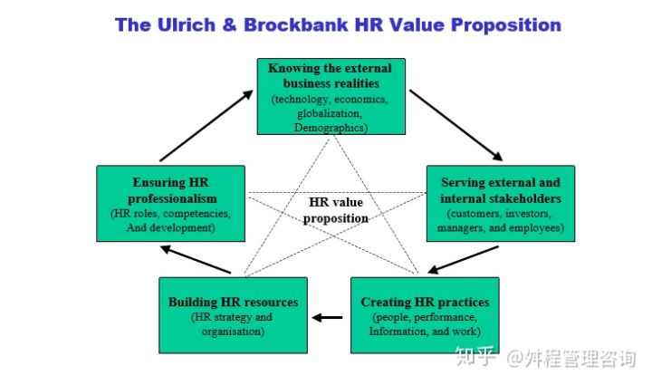 该模型从外部环境、内外相关干系人、HR日常实践、HR体系与资源以及HR从业人员五个方面来思考组织的HR价值主张。大家需要结合自己组织的实际情况进行思考与决策。
